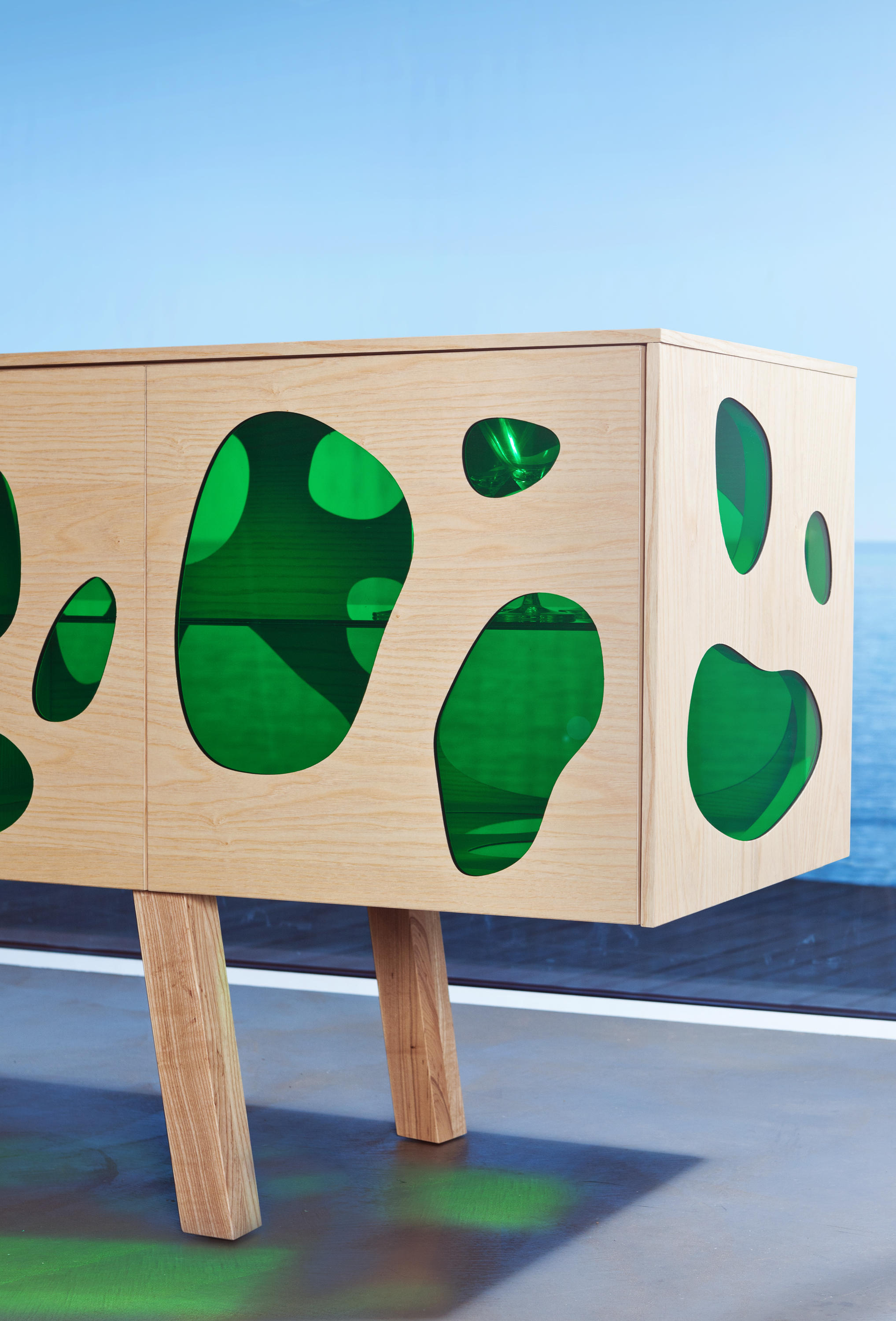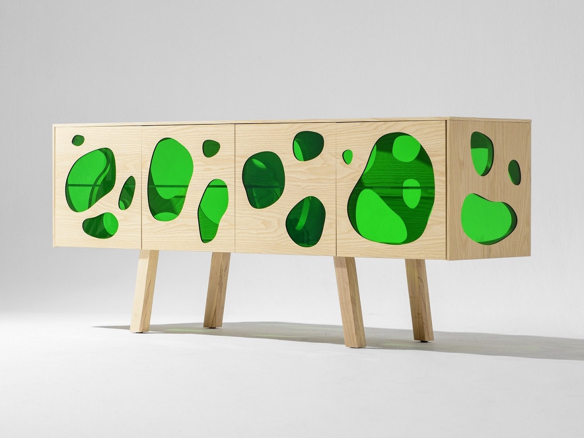 Aquário-带有门的木制餐边柜。 坎帕纳兄弟(Campana Brothers)设计的新橱柜Aquário。“我们与BD Barcelona Design的艺术总监Ramónúbeda保持联系已经有几年了。我们讨论了已经成熟并成为我们制作的自助餐的创意。费尔南多·坎帕纳(Fernando Campana)解释说:“灵感来自水族馆的想法,以创造出这件作品。” 温暖和寒冷。它已经成为我们设计语言的一部分。我也想玩对重的想法。玻璃的轻便和木头的体积。第一个的非物质性和第二个的物理性。” Fernando补充说:“餐边柜由木材,白蜡木或松木以及彩色玻璃门制成。