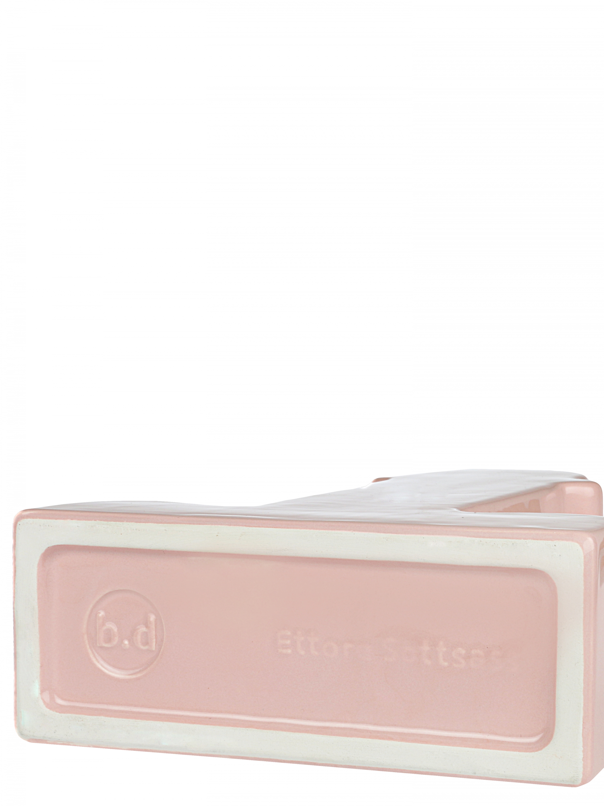 粉红釉面陶瓷。“我继续生产小型,小型,小型建筑,例如这种陶瓷作品,有点像古迹,有点像坟墓,有点像废弃的寺庙。诸神,有点像古代和未知文明的废墟,其中有人说过话。据说他们了解轴,曲线,相交点,甚至是宇宙物体路线的因果关系,每天都沿着这些轨迹滑动构成我们脆弱的肉体和血液的原子的私有顶点。”杰出的人物在Bd的第一个目录中推出了设计花名册。孟菲斯已经十年没有出现在现场了,但是Ettore Sottsass那时已经去过印度十年了。他的“小建筑”,例如这个花瓶,
