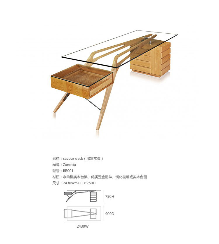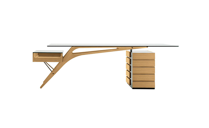 自 1949 年诞生以来,Cavour Desk(加富尔桌)的优雅和性感设计仍然是非常独特和令人印象深刻。水曲柳实木台架、优质五金配件、钢化玻璃或实木台面,这些都令人非常着迷。意大利设计师Carlo Mollino。他或许可算是20世纪内最重要的意大利设计师之一,他对于工业、室内、机械、建筑等设计的浓厚兴趣让其涉略多广,而不追求风潮的设计主张也让作品更加历久弥新。虽然在当时,整个大环境似乎并未给予他太多的掌声,但作品的深度与创意在今日来看却是不证自明。