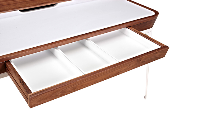 brooklyn desk(布鲁克林桌)是一件非常酷炫的家具,非常迷人且具有实用性,并设置了隐藏的区域给那些令人烦恼的小工具和电缆绳线。制作采用精选MDF板基材胡桃木或水曲柳木皮贴面、钢制脚架、环保油漆喷涂,做工精湛细致,品质一流。