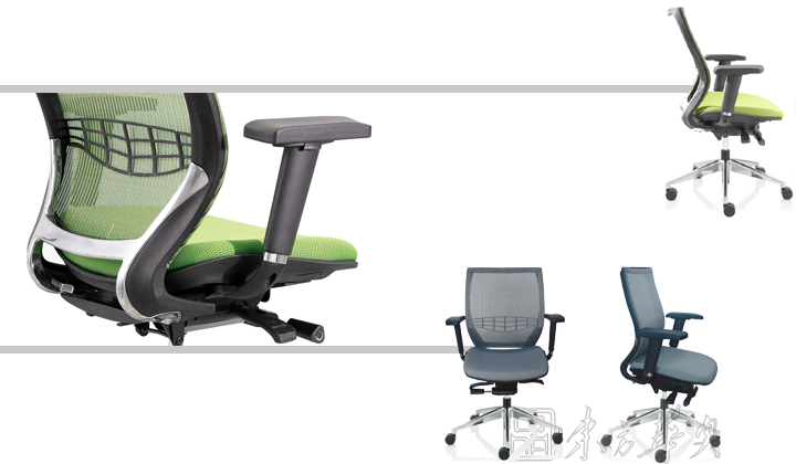 椅背:采用高张力网布,具有透气性强、弹力强及不助燃等特点。背框,靠背,腰靠:采用尼龙塑胶模出,环保,防助燃;材质靭性强并富有弹力,不易脆