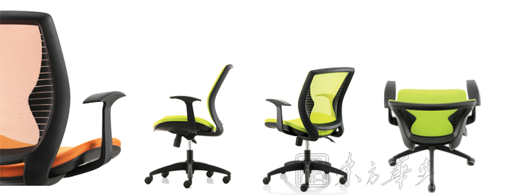椅背:采用高张力网布,具有透气性强、弹力强及不助燃等特点。背框,靠背,腰靠:采用尼龙塑胶模出,环保,防助燃;材质靭性强并富有弹力,不易脆