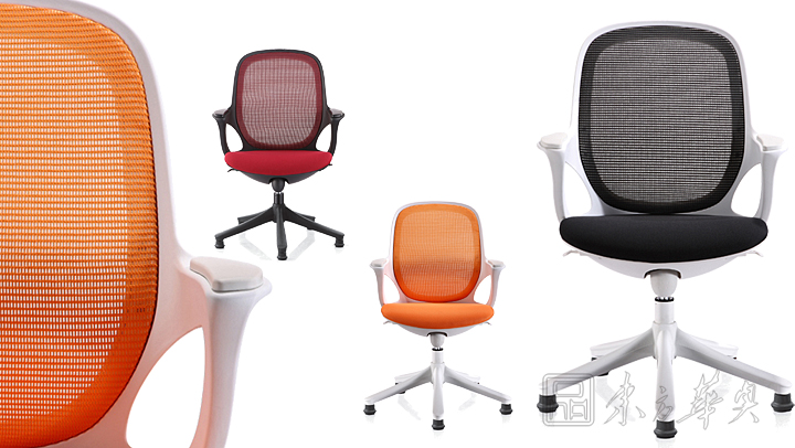 ※ 黑色框架,橙色网布椅的不同角度展示,多角度的展现,每个角度都成为一款艺术。