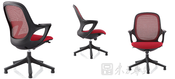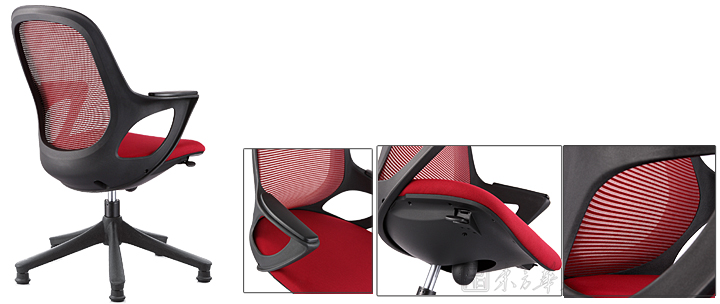※ 黑色框架,红色网布椅的不同角度展示,三角度的展现。