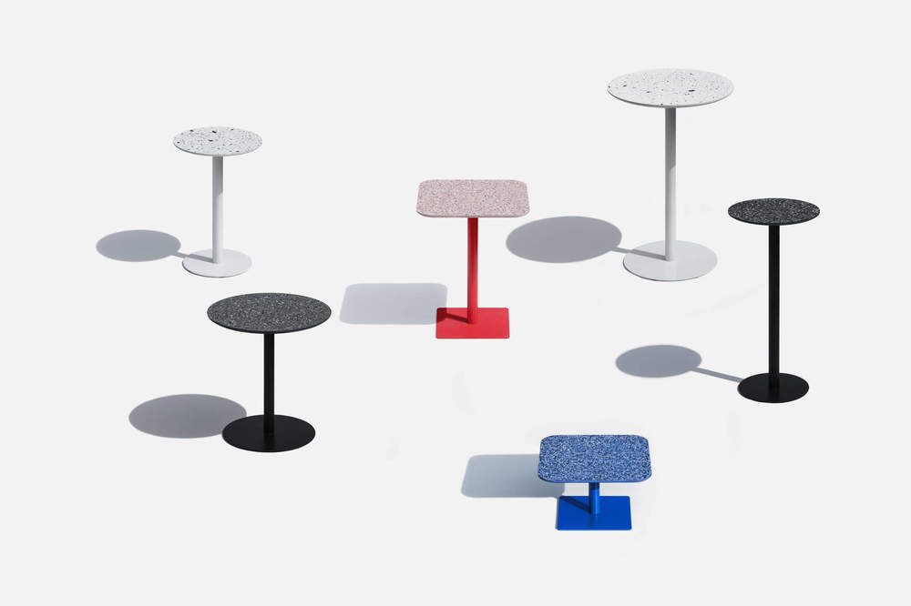 本产品采用了混凝土掺入石英粒的水磨石,随机分布的石英为家具提供了足够的装饰,既简朴又精致。 水磨石板材与支架通过巧妙的结构连结,垂直错开的支架使产品整体更具形式感。 倒角使得整体更具细节,利落的直线,是本土创造追求并相信的简单,和直接的材质表达的手法,没有多余的装饰造型线。