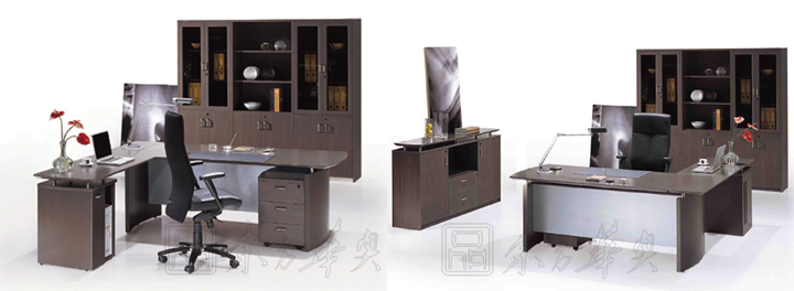 ※ 独特而时尚,木制行政人员书桌主要由一张两侧微弧形的桌面以两旁湾间隔板组成,前面四分之三高度的面板配以哑面银色,而附加的桌面由掩门式或开放式的小文件柜以放置电脑主机。多元化的储物配置包括活动文件柜、掩门地柜或地柜由中抽屉、上层架及两边掩门构成,另有归一设计的组合柜包括下部掩门、玻璃门及上部开放层架,同款弧形设计的会议桌可选择附加线缆储存系统。