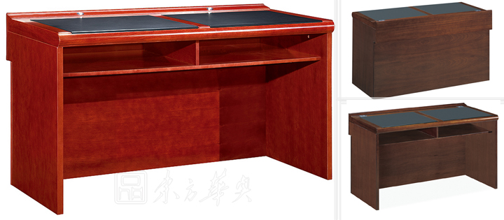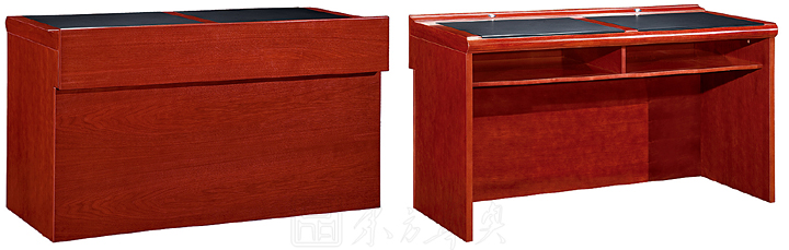 ※ 全木制结构条形桌,桌脚可做直形及弧形,下设空格储物空间,内嵌式皮垫写字板,麦克孔,满足不同需要;
