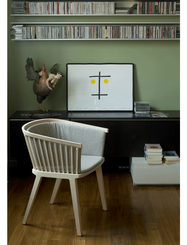 Secreto椅出自意大利设计品牌Colé,设计师为Lorenz*Kaz,一把同时展现现代与传统的扶手椅,Secreto椅传达了完美简洁的精髓是:“以传统工具为灵感去工作,以现代工艺品位去制作”。结构是其一个关键元素,在制造和细节上表现了其复杂性,尤其是其靠背,通过手工将每一个实木连锁杆紧紧固定在椅座上,可提供天然实木榉木,亚光漆的白色或黑色 (可按要求定做),您也可以选择舒适的纤维织物坐垫以提高舒适度。