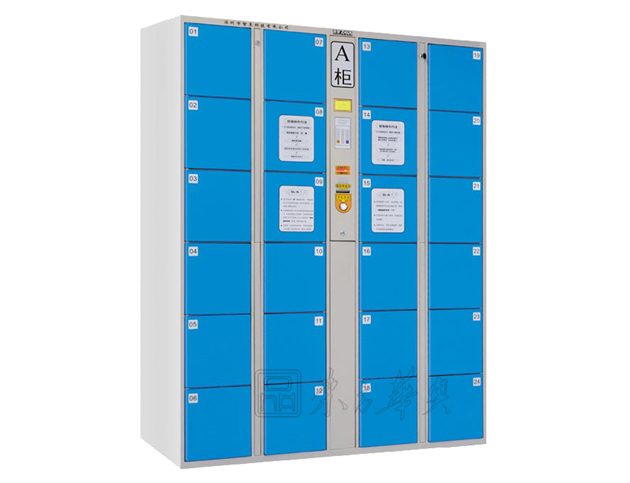 寄存柜柜体选用优质冷轧钢板,厚度不小于1.0mm,经冷加工成形后,用二氧化碳气体保护焊焊接装配而成,柜体结构坚固结实。柜体表面经除锈、除油、打磨、磷化处理后喷塑(不接受喷漆)。箱门背面增加纵向加强筋,提高箱门的防撞击能力。箱门两侧呈一定角度的弧线外形,增强箱门的防撞击能力,并且有效防止使用者因疏忽碰伤、磕伤。电控锁采用棘爪式结构,360度防撬、防插。