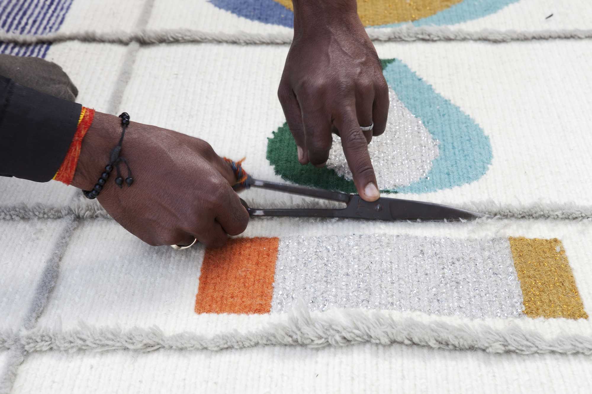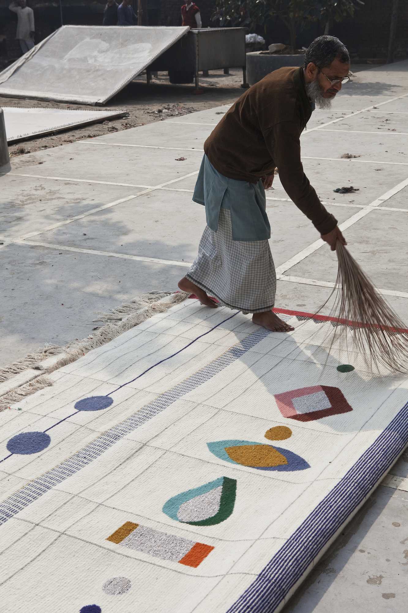 除了美丽的羊毛卷曲,Rabari有四个地毯(两个是米色的,一个是黑色的,一个是橄榄绿的),还有一个突出的设计,一幅Doshi Levien设计了一种精致的节奏和独特的视觉美感组合的画布。