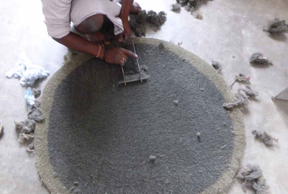 它由三种不同颜色的圆形模型和两种不同大小的圆形模型组成,一个正方形的版本,这是一个从来没有精确或对称的地毯。