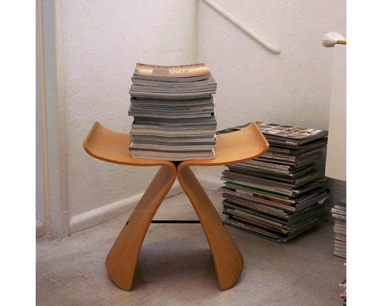 Butterfly Stool(蝴蝶凳)于1954 年由日本著名工艺设计师Sori Yanagi(柳宗理)所设计发表,蝴蝶凳的诞生以战后日本的经济重建为背景,它的特点就在于其构造的独具匠心:开头完全相同的两个部分通过一个轴心对称地连接在一起,连接处在座位下用螺丝和铜棒固定。是功能主义与传统手工艺的结合。这种造型很像是蝴蝶的一对翅膀,因而就取名叫蝴蝶。可放在客厅,易可放门厅玄关处做为换鞋凳,方便移动,功能强大,是集时尚、美感、实用等于一体的经典家居产品。1957年蝴蝶凳在米兰设计大赛时获得金奖。