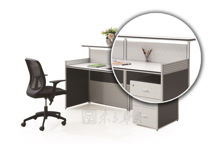 ※ 上图为前台背面图,直型台面,简洁而富现代感的外观,搭配多元化的桌面及配色设计,令空间富有灵动的变化;精致、稳固的金属元素是其品质的追求;可以轻松、经济地设计和配置属于您时尚的工作环境。