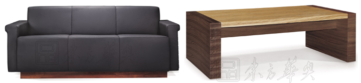 ※ 上图为系统配套的沙发、茶几,供参考,沙发皮面颜色多种选择,茶几木皮颜色可与班台同色。
