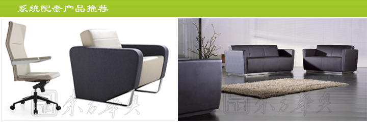 ※ 上图为推荐配套大班椅和真皮沙发,真皮颜色都是可以选择,大班椅真皮扶手垫,有倾仰功能,沙发扶手侧可做布艺,不锈钢脚架!