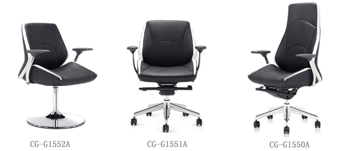 A:椅身采用钢管成型,座、背PU定型棉,西皮配白边.铝合金脚,PU大脚轮,100#行程阿的高汔杆。
