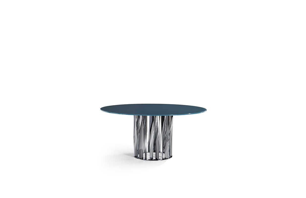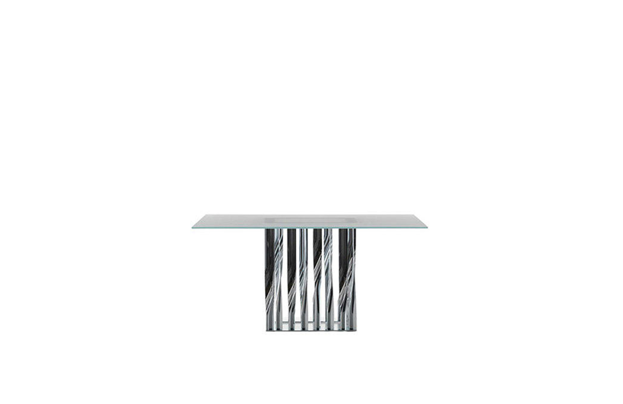 不锈钢电镀折叠而成独特脚架——大胆挑战由薄金属垂直条、微扭纵轴形成的桌几支撑,为家庭创造一个独特的景观