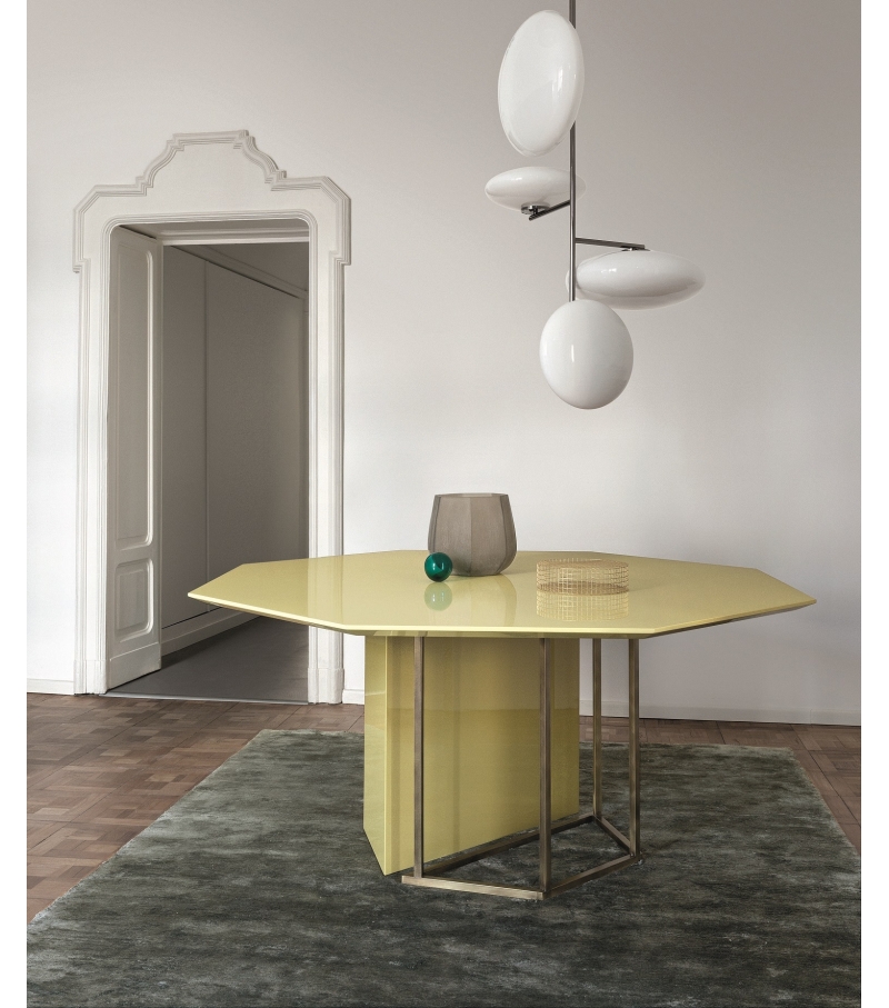 光结构化在黑色金属基地或古铜色的黄铜完成匹配固体体积覆盖着各种大理石、木材或漆完成,自由结合不同形状的顶部给生命一个相互作用的固体和空洞。