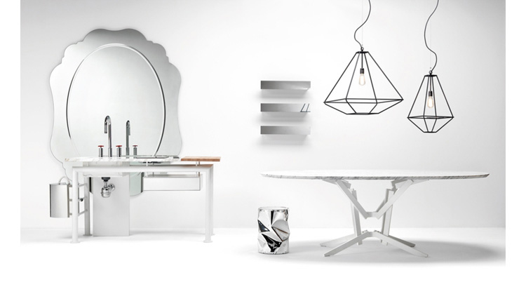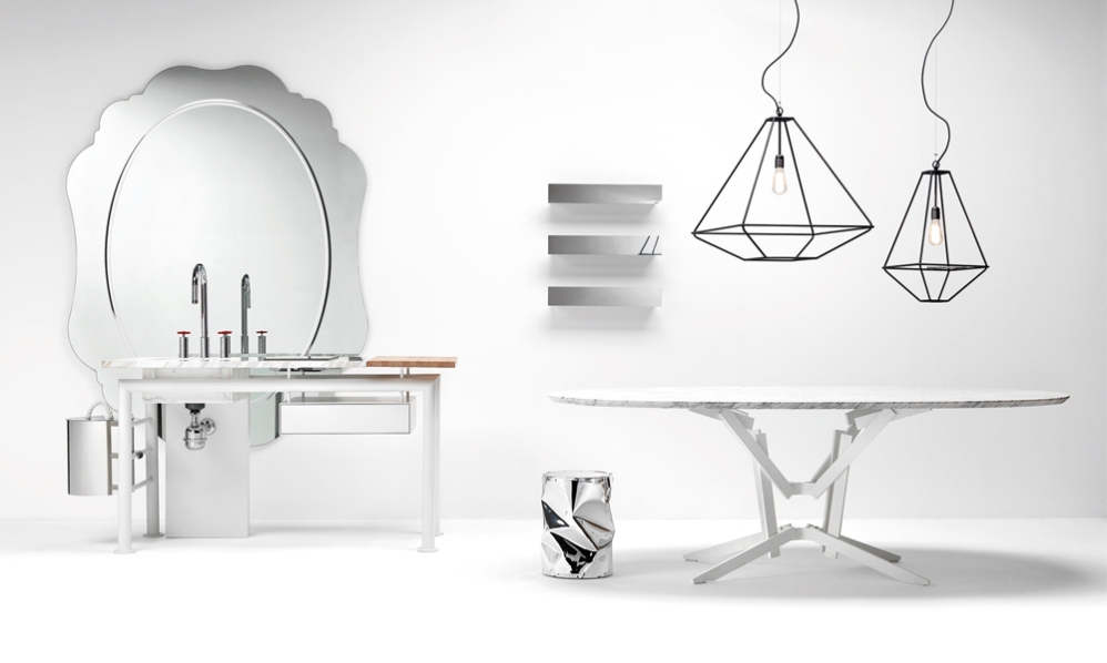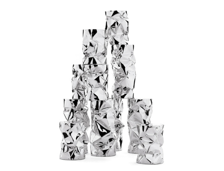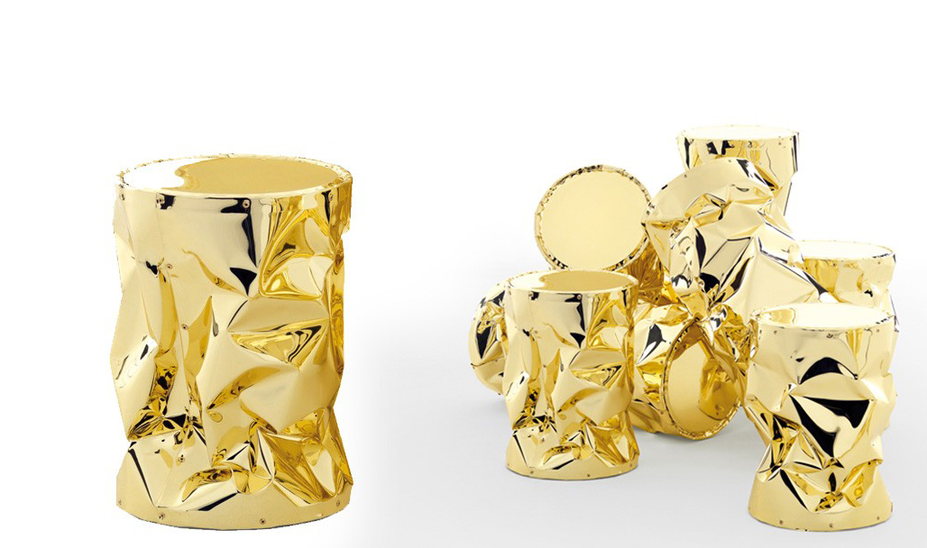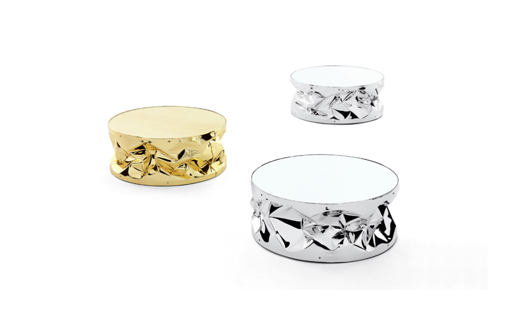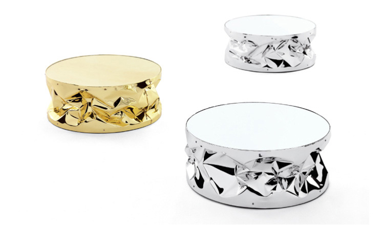 folded aluminium.The reflecting surface is presented INA singular.The coffee table