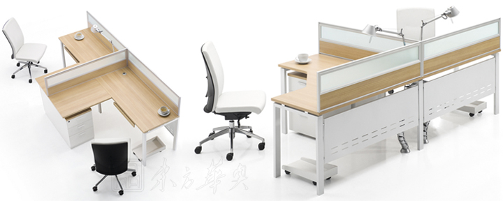 ※各类桌面造型可供选择,并由匹配的抽屉柜、边桌和矮柜构成和谐的办公系统。