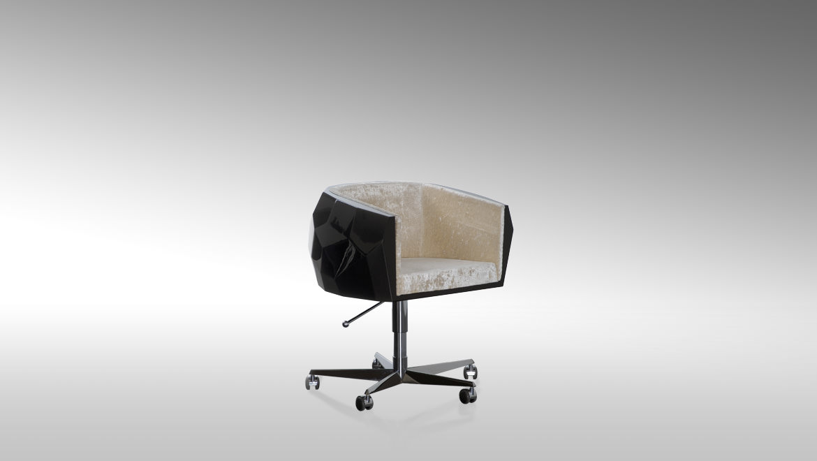 豪华座垫可在皮革或织物色调与您的内部。椅子放在金属底座上,有各种各样的饰面,如镀铬。无缝漆聚氨酯外壳有黑色、象牙、铂、银和一些变化的坐垫和金属底座.