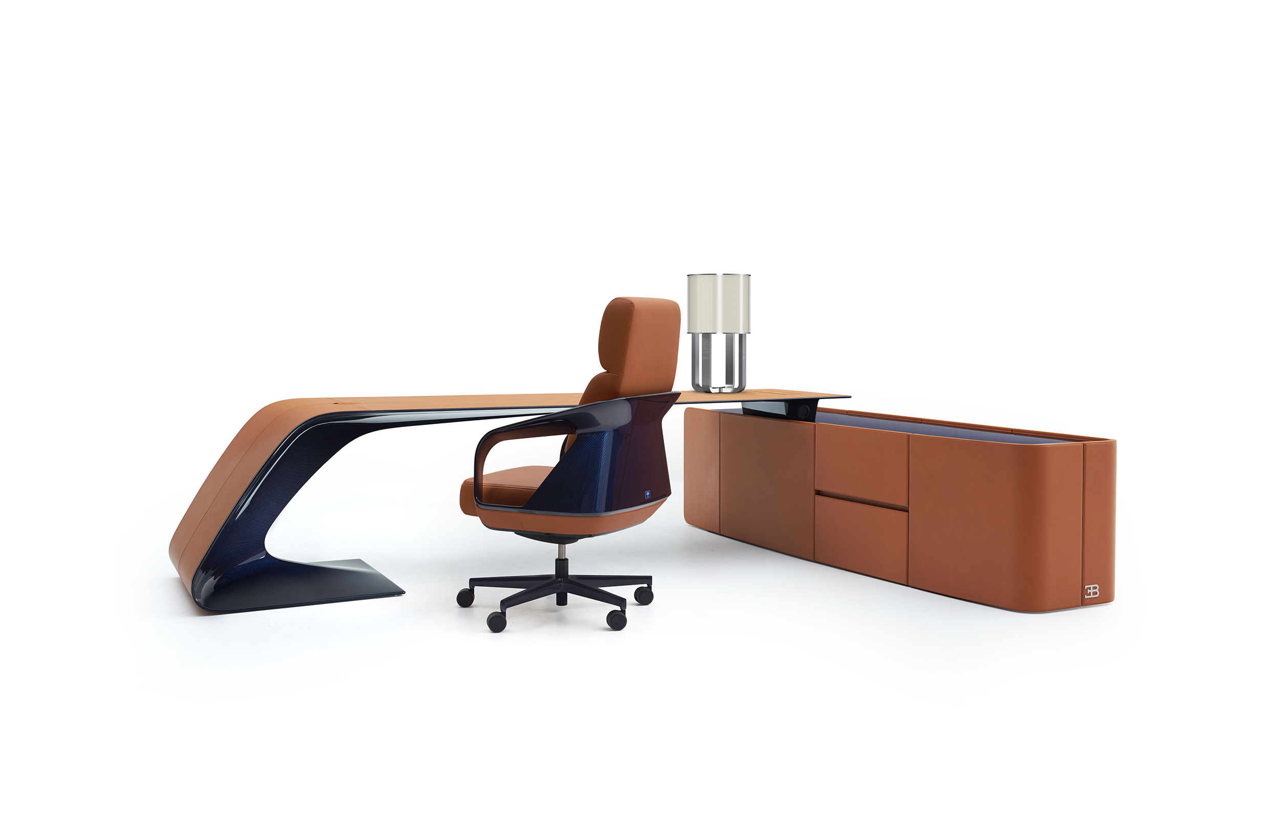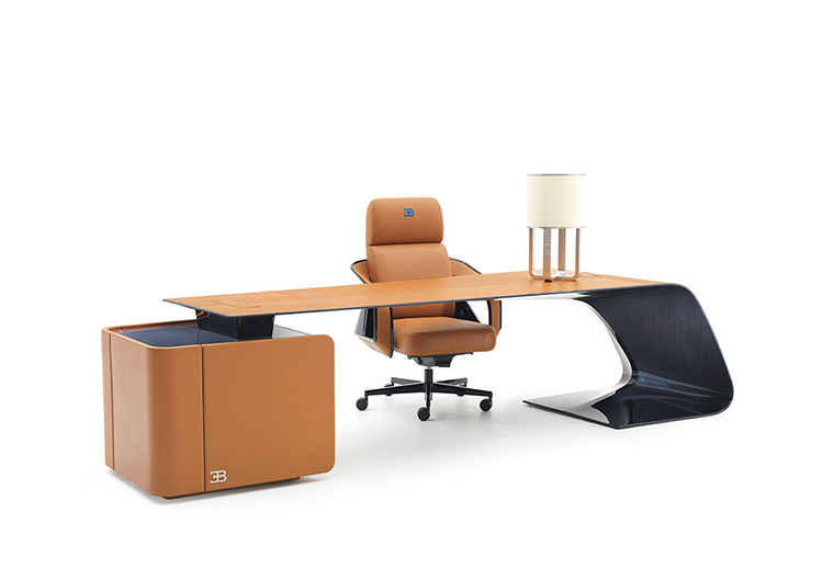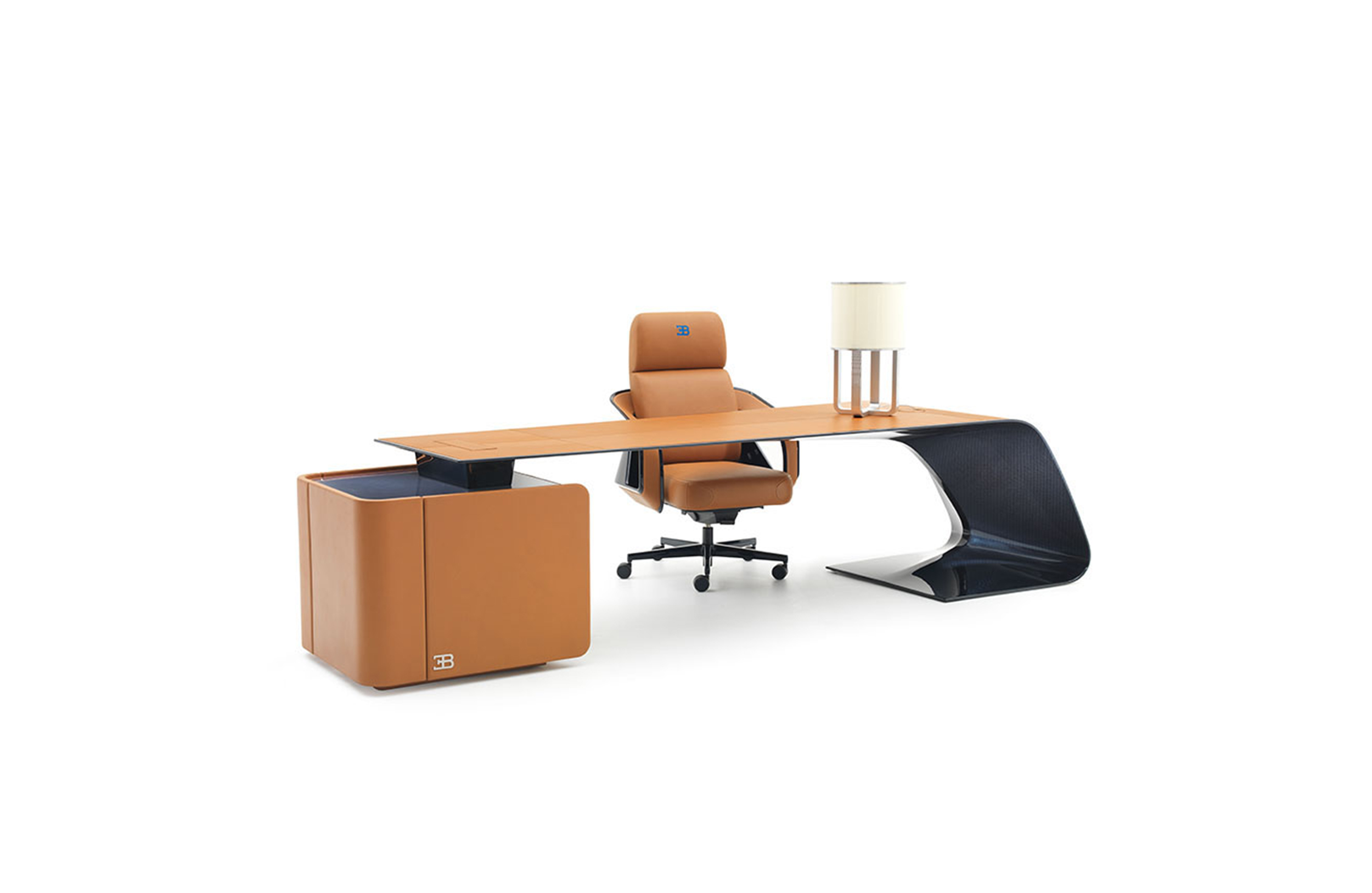The rectilinear top extends lengthwise from the cabinet, seamlessly sloping to form the opposite base. A re-design of the classic desk, made possible by the outstanding performance of carbon for the structure.