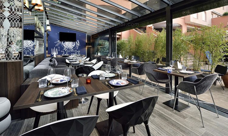 精心研究的设计始于框架、支架的质量。人体工程学决定座位的位置。获得舒适的两种互补方式:支持和包络。椅子和扶手椅在底座上有一个软垫外壳;而躺椅和扶手椅的盖子则直接固定在镜框上,这是一个用来支撑和引诱占领者的囊。这个名字取自于由咖啡和朗姆酒制成的加勒比海甜酒,是关于双重身份的,这是对一种对立的游戏的暗示。姿态既正式又非正式,扶手的对称和不对称,框架的棱角和曲线。所有的用途都是允许的:等待,休息,放松。
