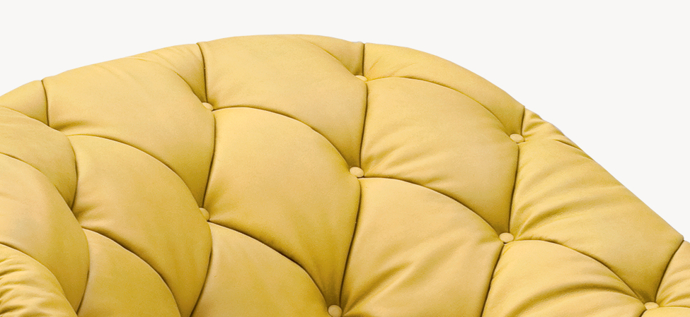 帕特丽夏·厄奎奥拉采用的是一种全新的旋转方式,革命性地改变了这一概念,她设计了一系列的产品,这些产品的形状看起来是液态的,就好像它们在框架上融化一样,以制造柔软的,舒适的,几乎随意的线条,这些布料和皮革都用按钉固定在外壳上。这些碎片似乎披着披在肩上的披巾,座椅上有各种重叠的软垫:几乎是对其覆盖层的设计、层叠的皮革和其他材料、颜色和面料类型的关注。这是一种奢侈的拼贴,当它穿过时,就会给人一种游牧式的全球精神。