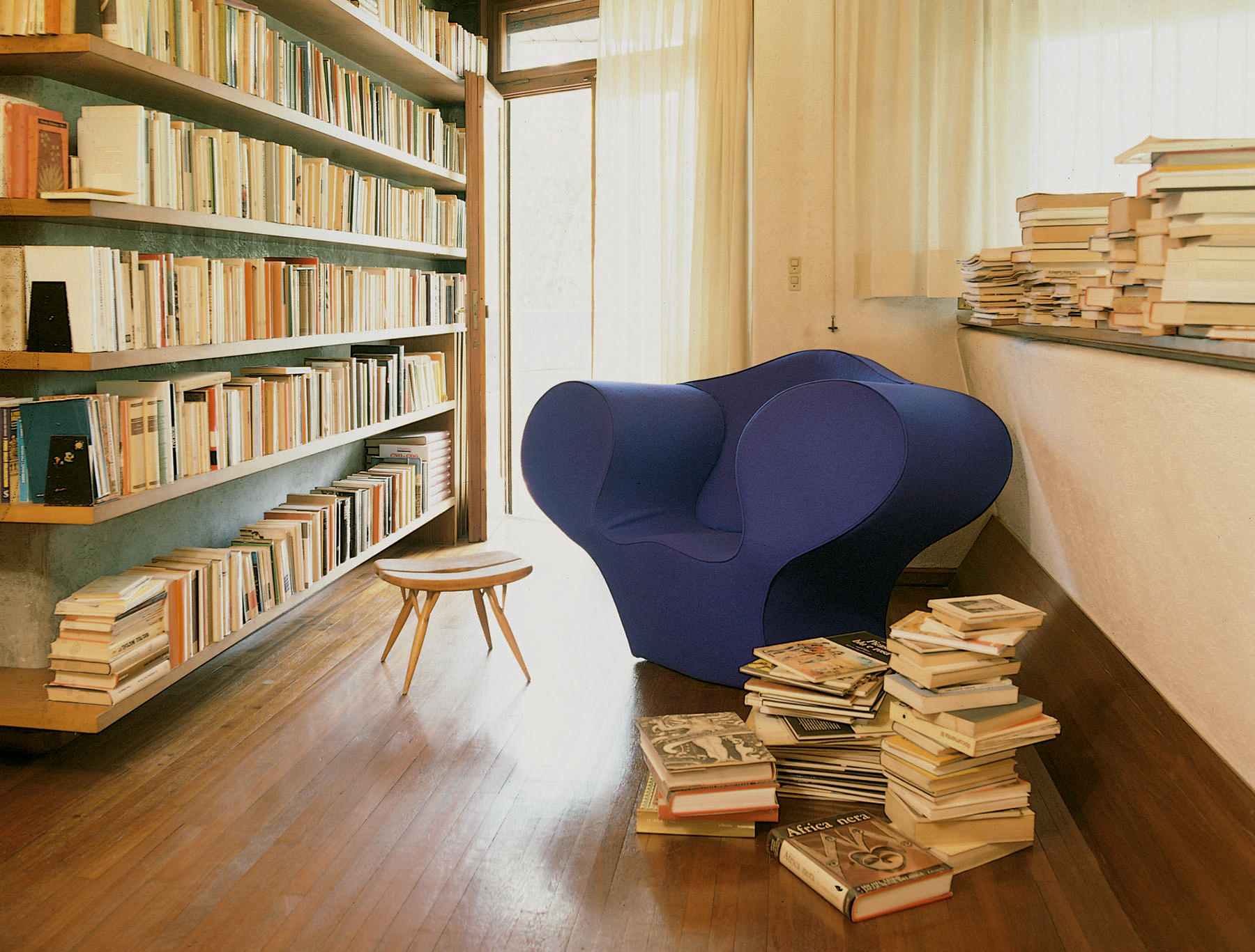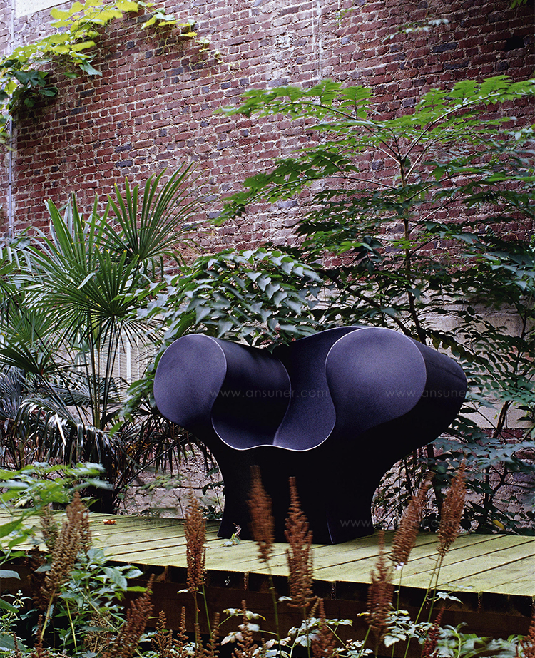 由Ron Arad在1988年设计的一个大的简单的钢椅,展示了一种简单的形式,可以在不影响设计原则的情况下,通过对材料和生产过程的重新解释而被翻译。从建设性的姿态获得的模型变成了工业生产;视觉的柔软和丰满的体积,舒适。更容易探索旋转模制和聚乙烯的使用;在冷泡中柔软的版本,用聚酯纤维包覆,触觉表面的转换;在元素的集合中,形态学和动态形式。