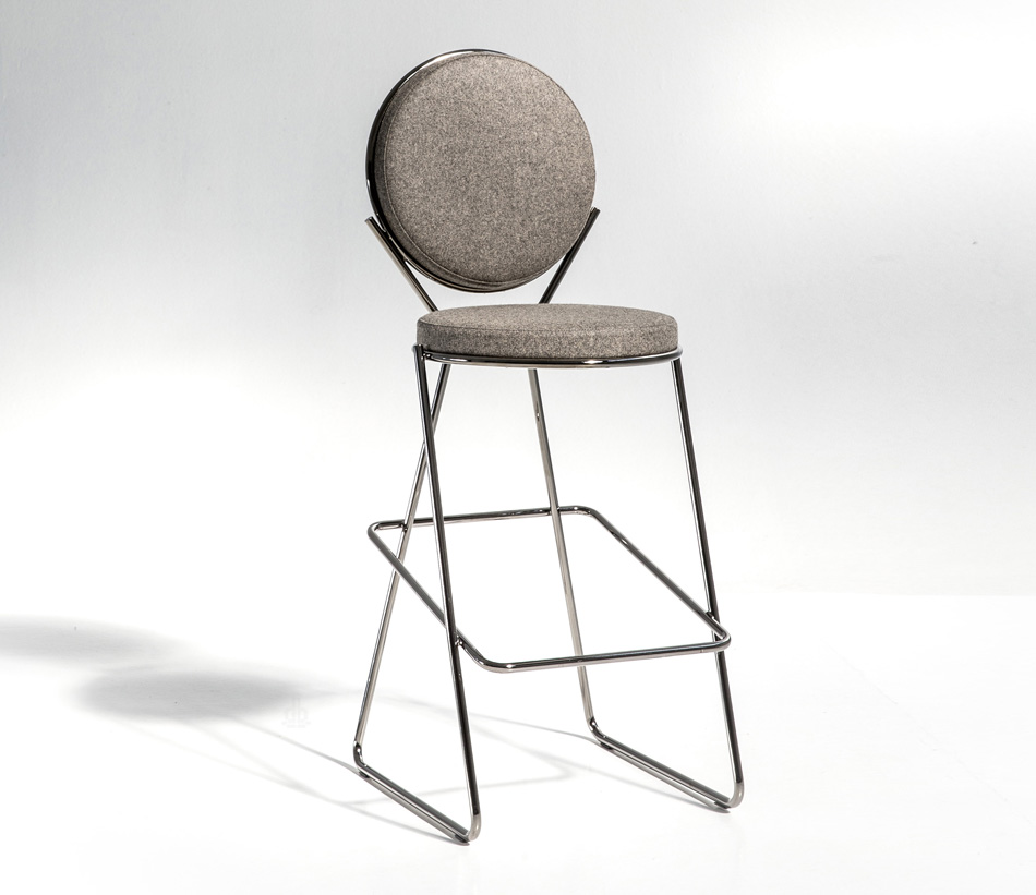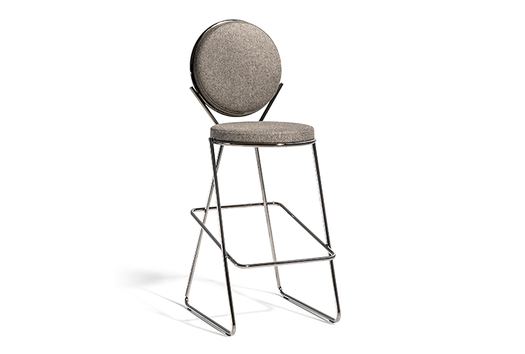 两个圆圈,两个基本模块接枝到本领域的结构几何结构中,去除了灵感,公开地传达了最大限度简化的趋势。这是高品质工业生产的前奏,这是一种优雅的经济,由镀铬钢框架提供的可能性表达,将设计结构设计成一个完整的座位家庭。这样,一把椅子和一把凳子就诞生了,没有扶手,加上一个小小的双座沙发,这是一种精致的正式进化,由良好的品味和阶级所决定。这是一种回归秩序,向一种同时奢华和合成的语言过渡。