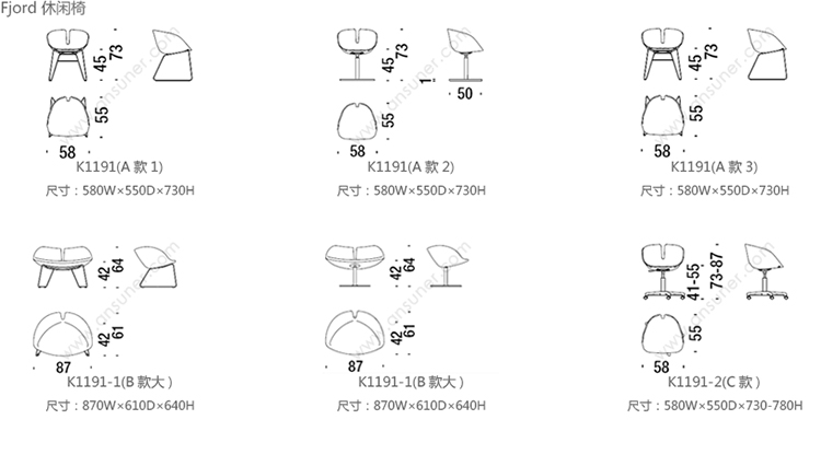 Fjord 休闲椅 系列尺寸/示意图