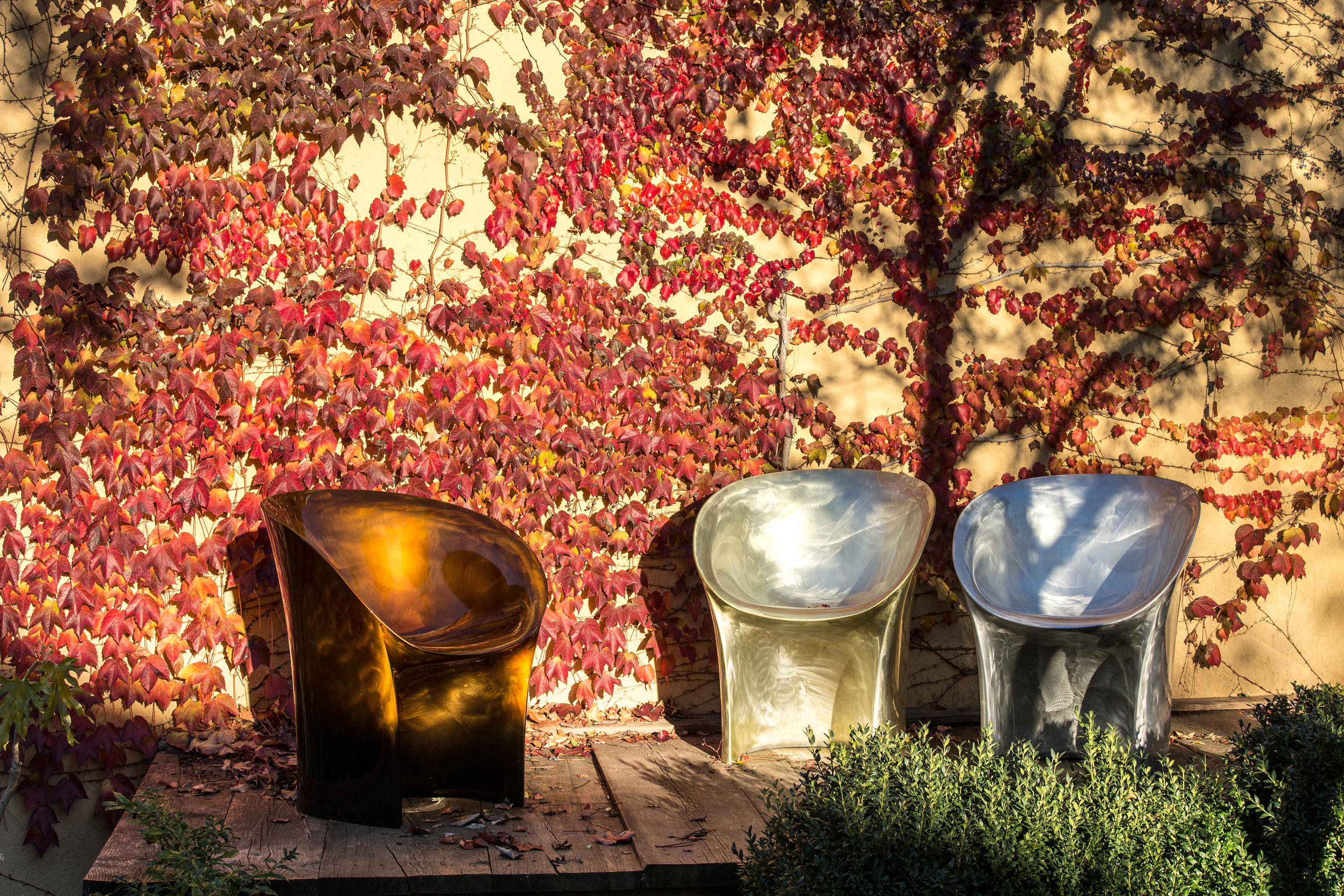 空隙和空间在完美的形式和谐中移动。移动的,流动的线条给椅子的轮廓似乎是转瞬即逝而不是固体,吸收和扩散一个微弱的,精致的辉光。在月球上,大小是一种错觉。从侧面看,座椅的曲线与底座的圆柱形结合在一起,让人联想起盛开的花朵,在这种严格的几何秩序下对有机的让步。从前面看,当光线出现和消失时,座位上的光芒就会散发出迷人的魔力。这种形式如此新颖的原因是来自不同层面的回响。它是一种新的三维形式,它加强了作品的时尚线条和月亮般的质感,这种质感源自于实体与消逝的相互作用。