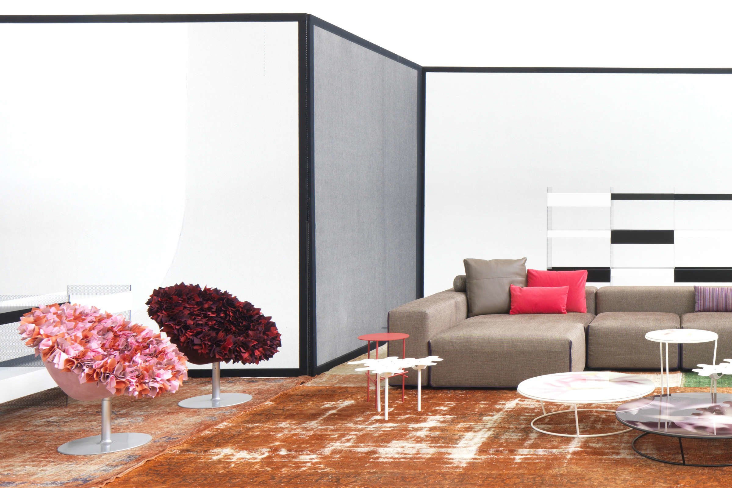 如纤细的镀铬金属茎上,绽放出一束花瓣,花瓣由一块块的织物组成,这些织物是用熟练的双手和无限的耐心一一折叠和缝制的。这是对精神美的一种赞颂,这种美存在于一个简单的重复动作中,揭示了视觉和真实形象之间的界限。花瓣的外皮包裹着鸡蛋形状的贝壳,直到所有的内部都被覆盖。梦幻的寓言,在工业设计的对象中颂扬的复杂的诗意转换。这把椅子让坐在上面的每个人都很开心,就像一束花一样。