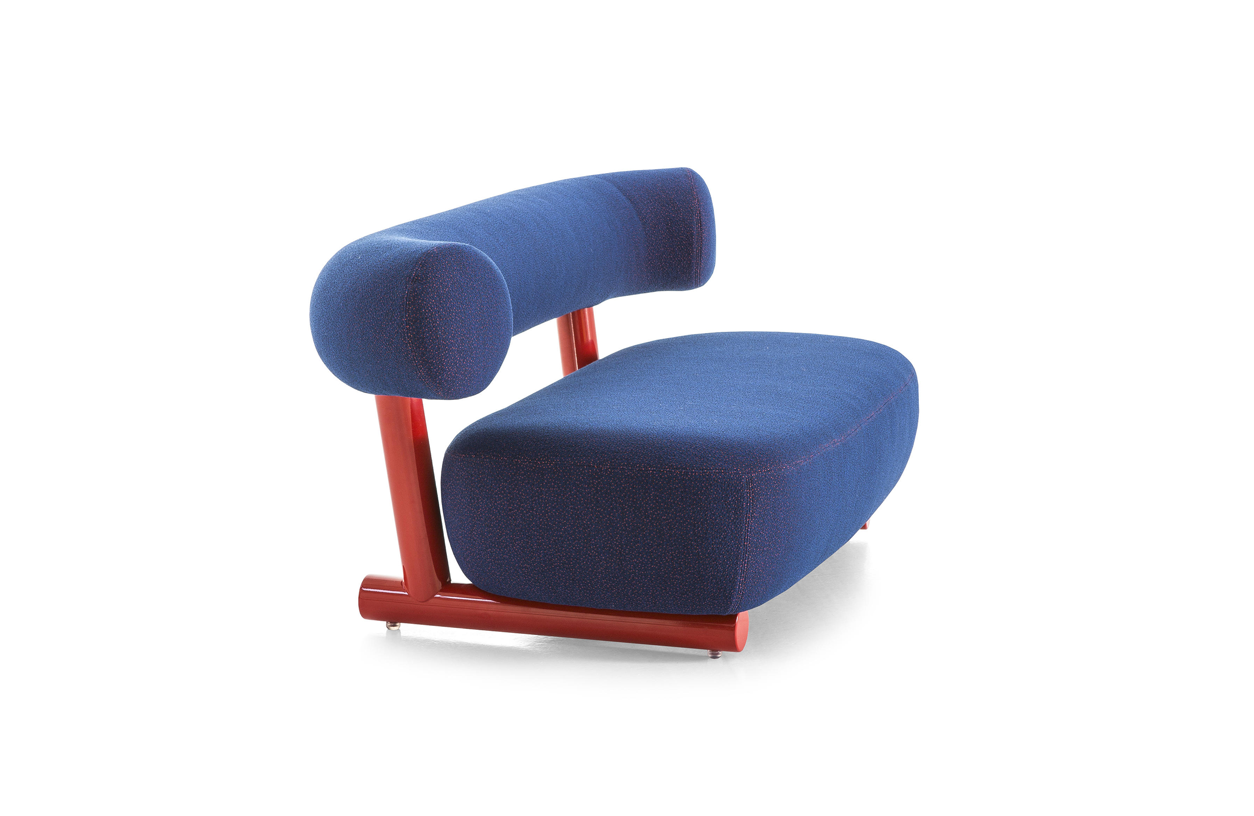 把粗糙放置在精致上面,选择一个与趋势相反的选择,而不是最常见的研究苗条的形式。尽管如此,保持轻盈,空灵。因此,设计是围绕着超大号的最让人放心的方面:简单性。这个极简和坚固的结构是用一个直径80毫米的粉彩铝管建造的。其上有一个带有圆形体形的座垫,这是一个关于充气模块的构思的隐蔽暗示。背面,就像一个大胆的圆括号,承诺给人安慰。它的效果,以及自然的吸引力,都是令人愉悦的圆润,随意而轻的。