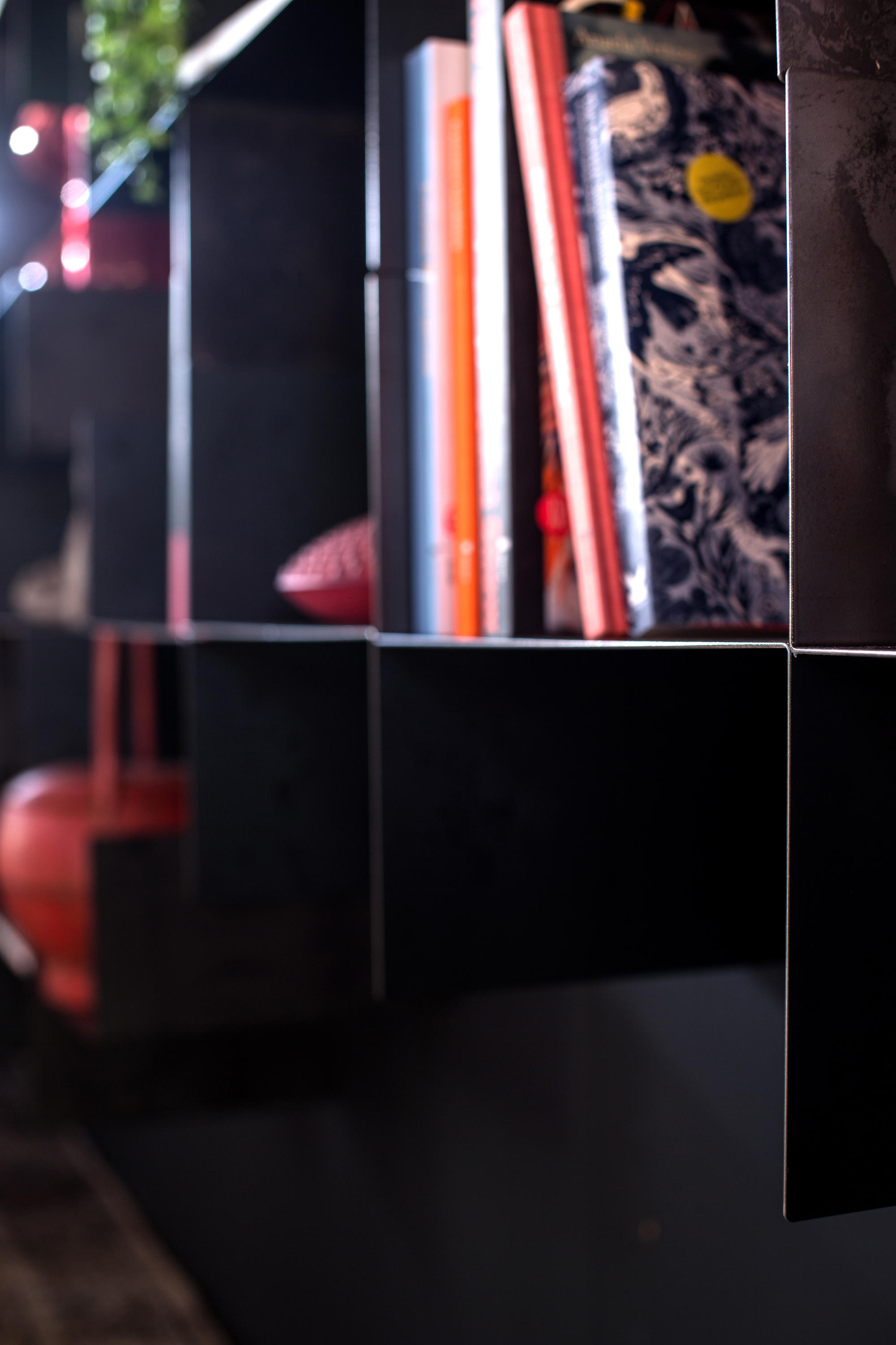 一种切割的金属薄片,裸露的,没有装饰的。它在构图上,在结合的自由中,把自己区分开来。最终形成一个不完整的格栅,通过切割来分解。这是一个金属工人认真工作,是一种机械加工的残留物,它是一个在残酷的美学和诗歌之间的废弃行业的快照。Z-shelf,连同3个修女凳子和滑翔机沙发,都是Americana的一部分,这是一个异构的收藏,通过使用钢铁来庆祝概念性的作品,作为设计实践的一种表现,同时拒绝既定的惯例和标签。