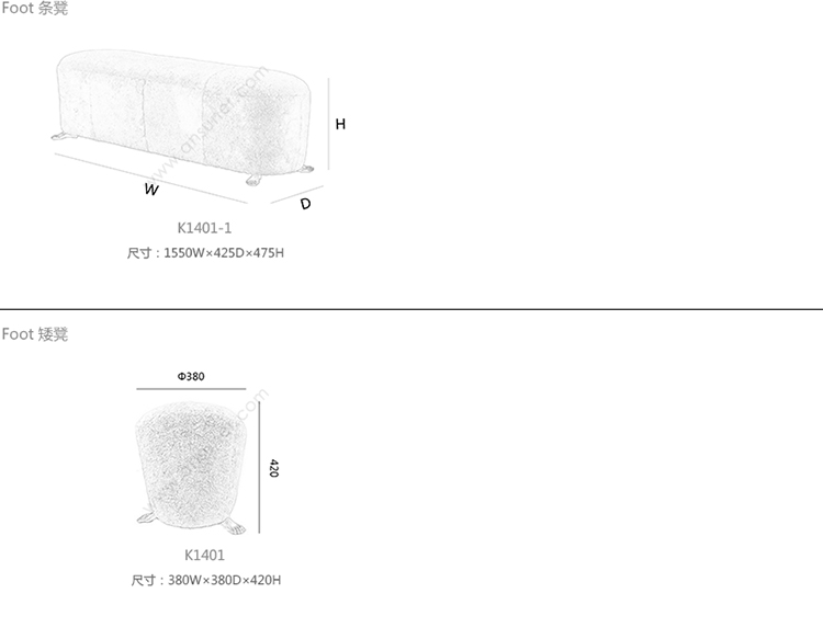 Foot 长凳 系列尺寸/示意图