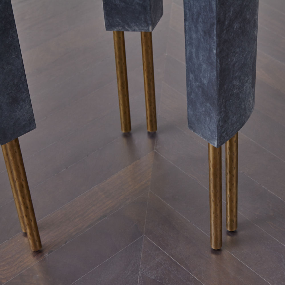 受到凯利对几何,负空间和建筑轮廓的亲和力的启发,Melange Side Table既是过渡性的又是标志性的。 在坚固的抛光青铜中,管状腿具有手工锻造的质地,并与深灰色或象牙色的手工抹灰石膏并置。