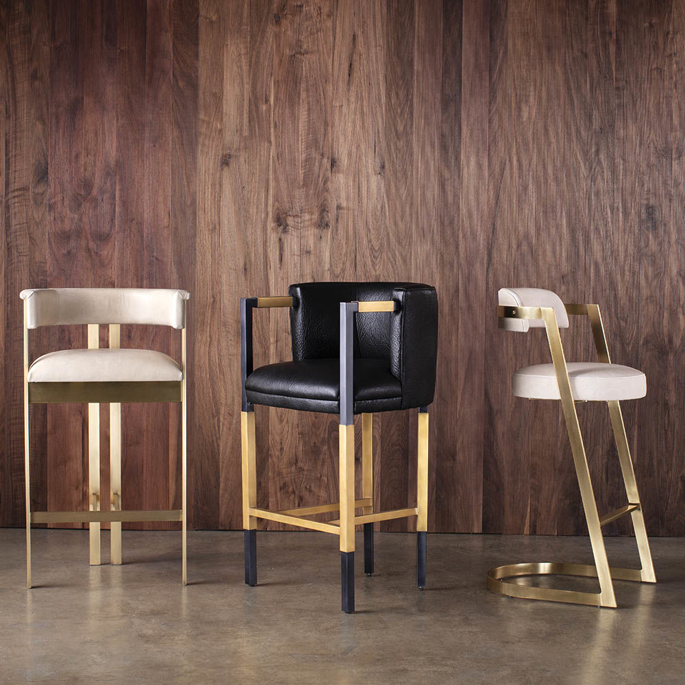 标志性的Elliot吧椅结合了简洁的线条和经典的乡土风格。 这款软垫凳子配有成对的黄铜吧腿,饰有抛光黄铜或油擦黄铜饰面。 座椅有各种精选面料和皮革可供选择。