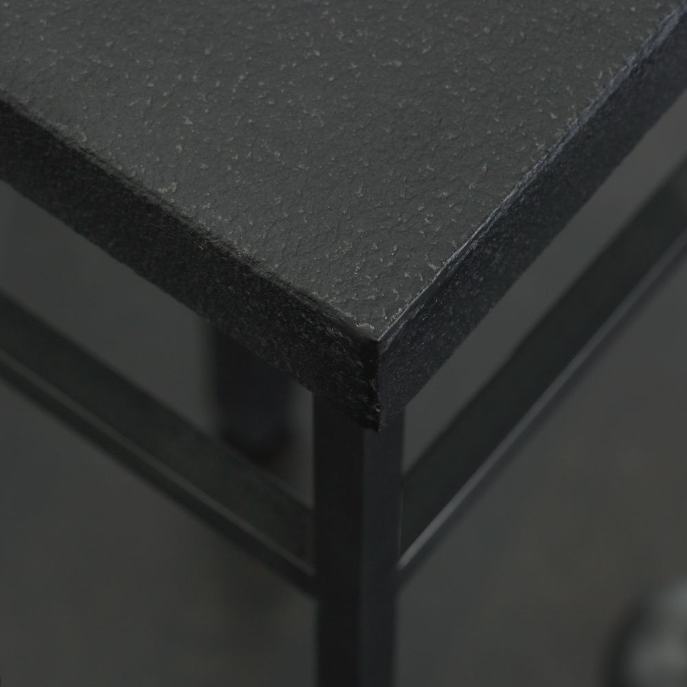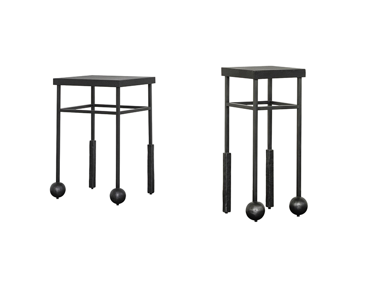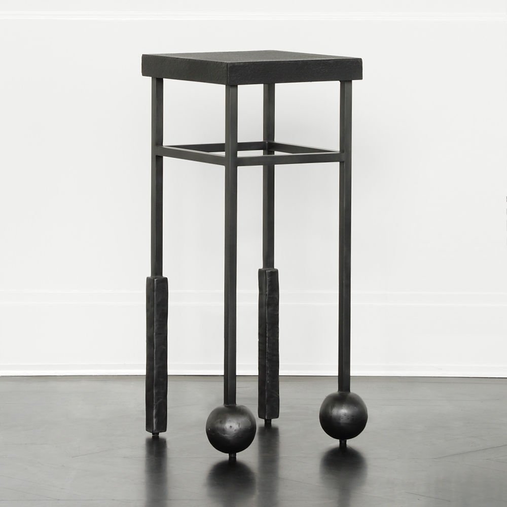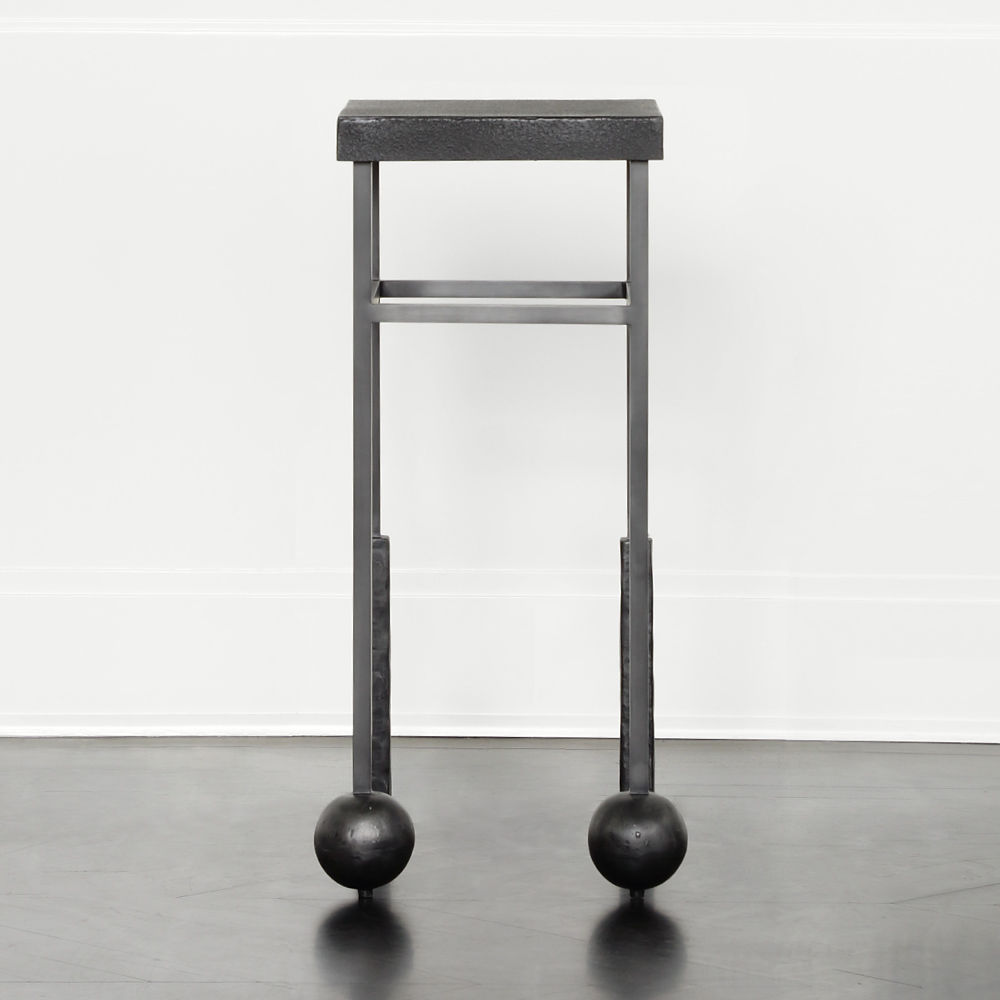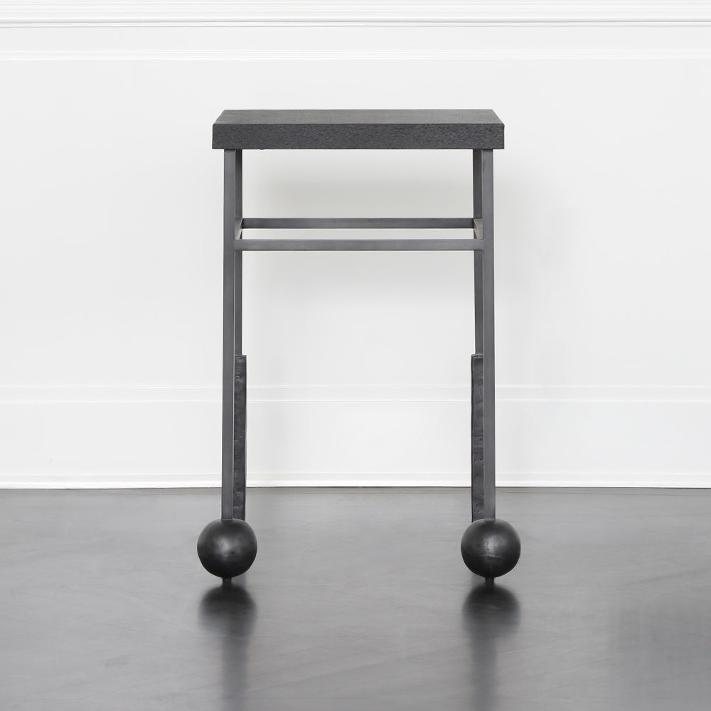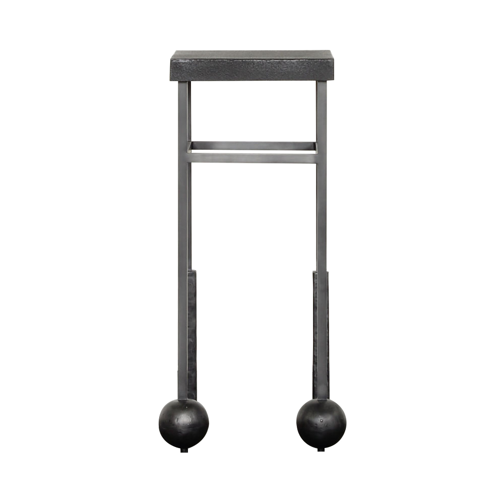 雕刻的尼姆饮料桌是由黑色不锈钢手工制作而成,具有细长,光滑的铸造方形细高跟腿,手工雕刻的铸钢球体和黑色花岗岩顶部。
