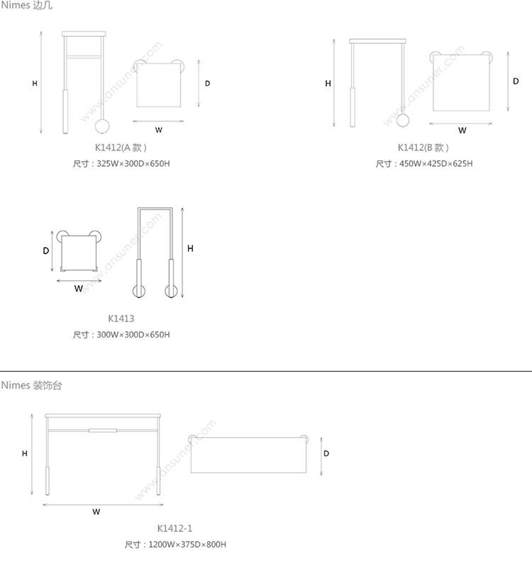 Nimes 边几 系列尺寸/示意图