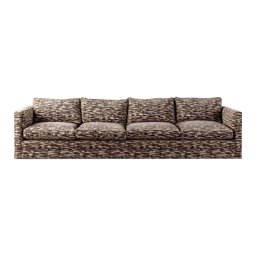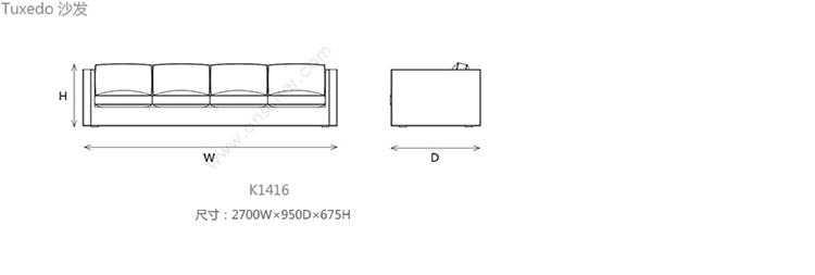 Tuxedo系列是我们提供的最流线型,永恒且美观的多功能座椅组合。 这款108英寸沙发版低矮地贴在地板上,配有薄而高的手臂,四个松紧的靠垫围绕四个座垫,全部采用25/75鸭绒和羽毛填充。配有8向手动弹簧,我们设计的硬木框架依靠 在榫卯细木工艺品上,树立了质量和工艺的标准。有各种精选面料和皮革可供选择。