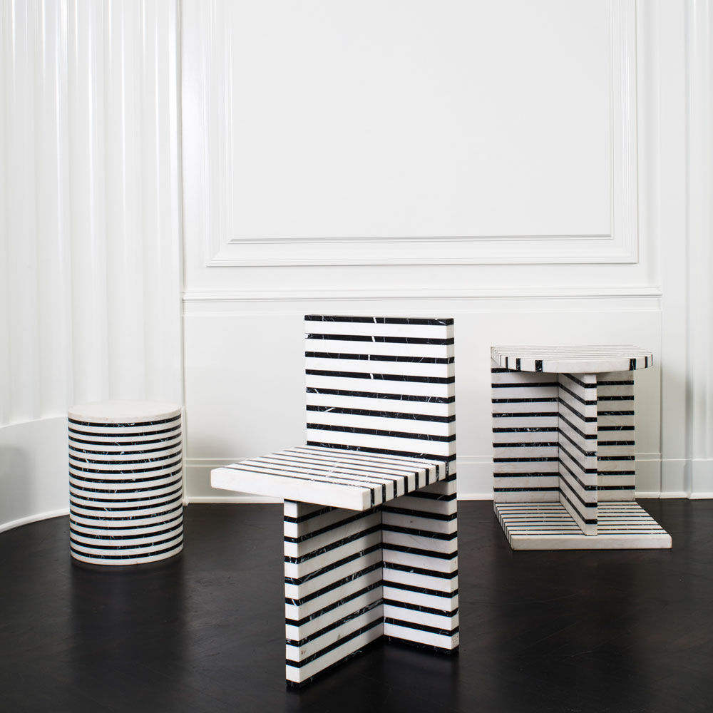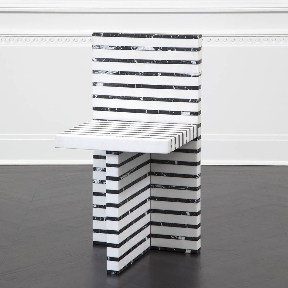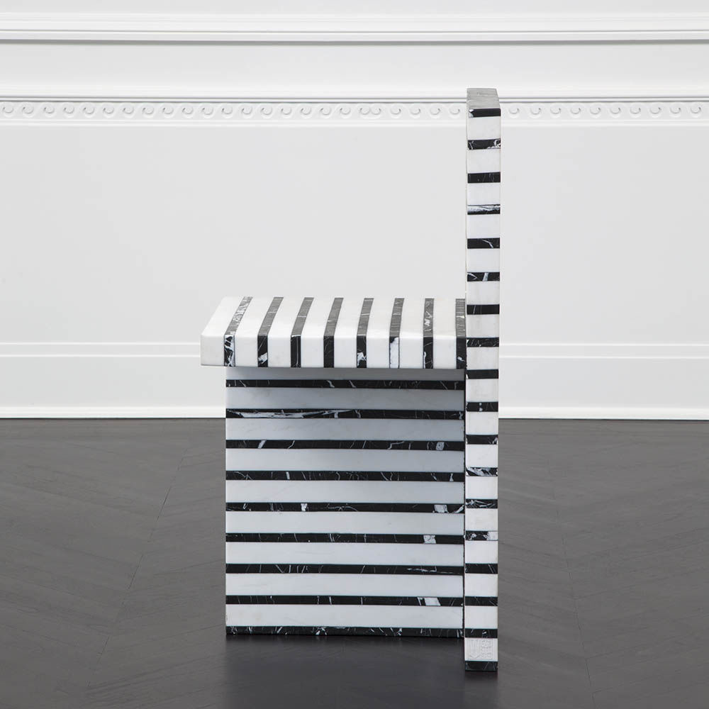 作为混合大理石和建筑构造形式的汇合,Lineage椅体现了艺术和功能的现代二元性。 这款雕塑般的椅子采用天然黑色玛奎那和白色大理石层层交替,经过磨光处理。