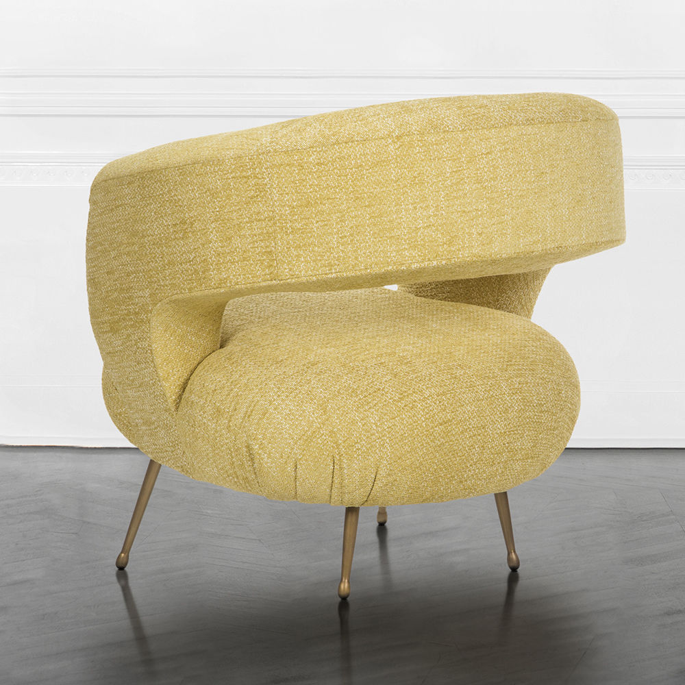Laurel休闲椅采用醒目的开背,紧凑的软垫座椅和柔和的圆润轮廓。 它位于抛光黄铜的锥形铸造黄铜腿上。 非常舒适,适合休闲。 硬木框架采用双层细木工制成,可延长使用寿命。 提供精选的精选面料和皮革。