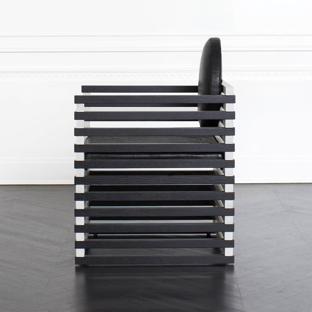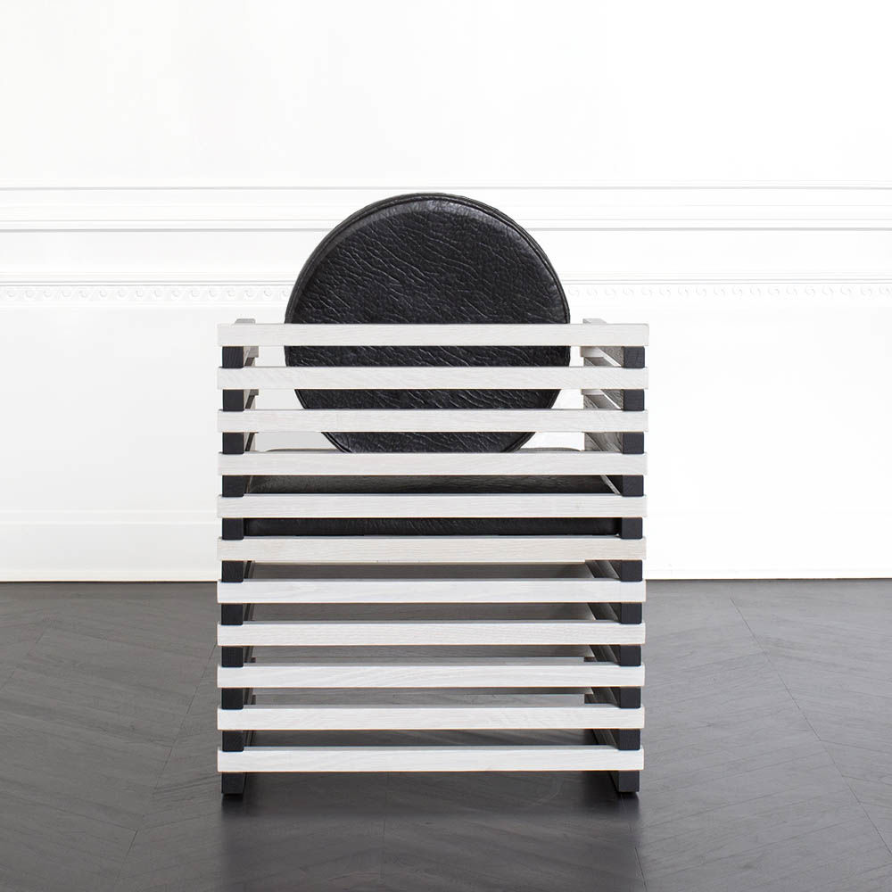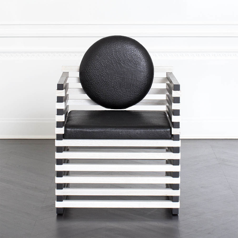 这款图案优雅的扶手椅采用实心橡木制成,采用交替的漂白Ebonzied饰面。 圆形靠垫增强了这种偶尔座位选择的雕塑魅力。 完美搭配入口通道或靠近控制台或书柜。
