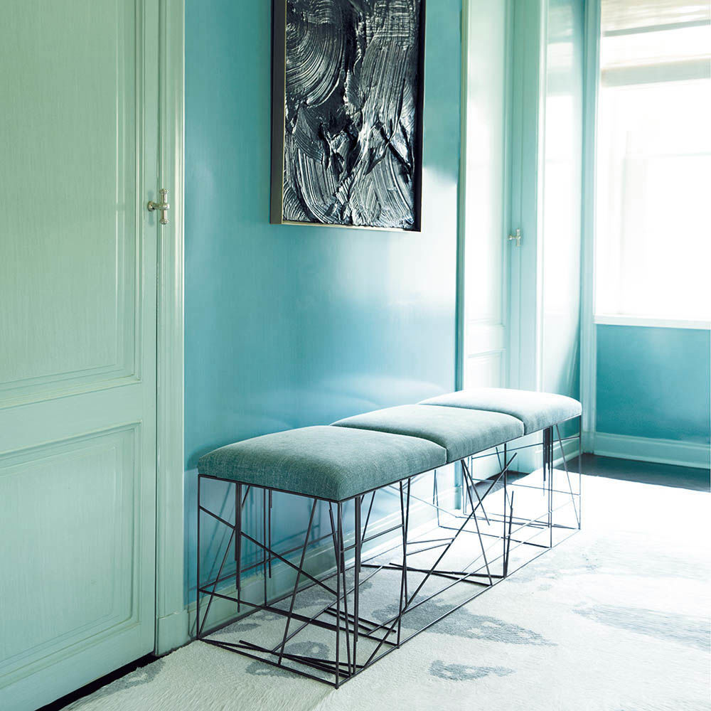 Turmont长凳是一款大胆的图形座椅,采用光泽的黑钢制成。 三个低调的座垫提供舒适性,而不会打破这个雕塑座的戏剧性线条。