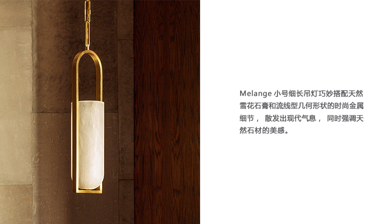 Melange小号细长吊灯巧妙搭配天然雪花石膏和流线型几何形状的时尚金属细节,散发出现代气息,同时强调天然石材的美感。 这款吊灯采用手工雕刻的天然雪花石膏,配以古董黄铜,青铜或抛光镍细节,适合潮湿环境。