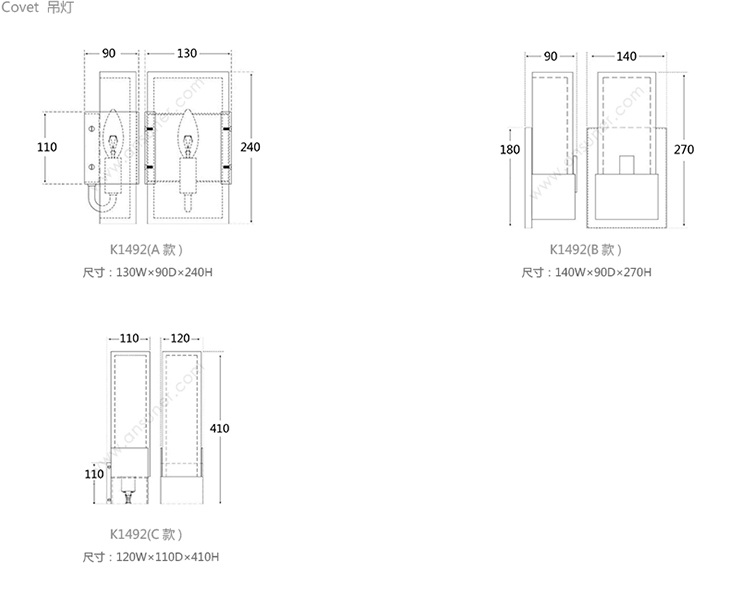 Covet 壁灯 系列尺寸/示意图