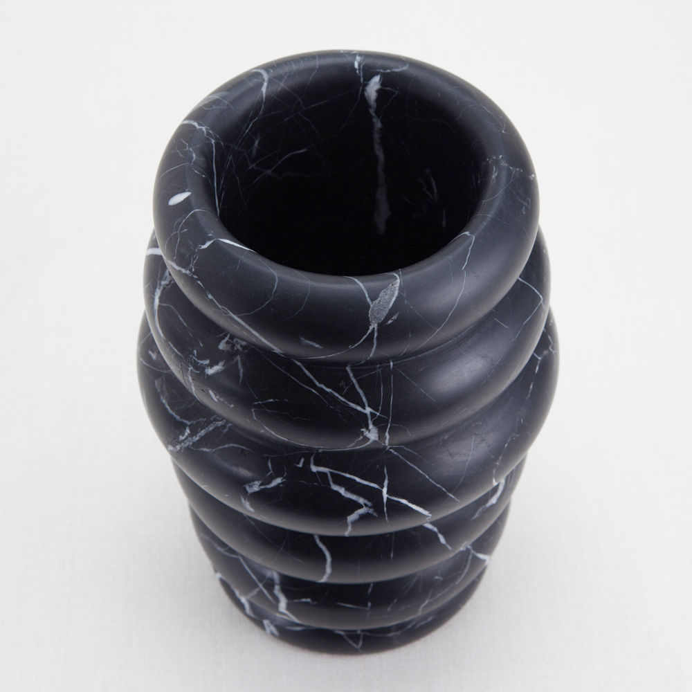 这款手工雕刻的花瓶有着有机的曲线和奢华干净的纹理,是一款优雅而有韵味的花瓶,可以盛放鲜花,也可以单独摆放。