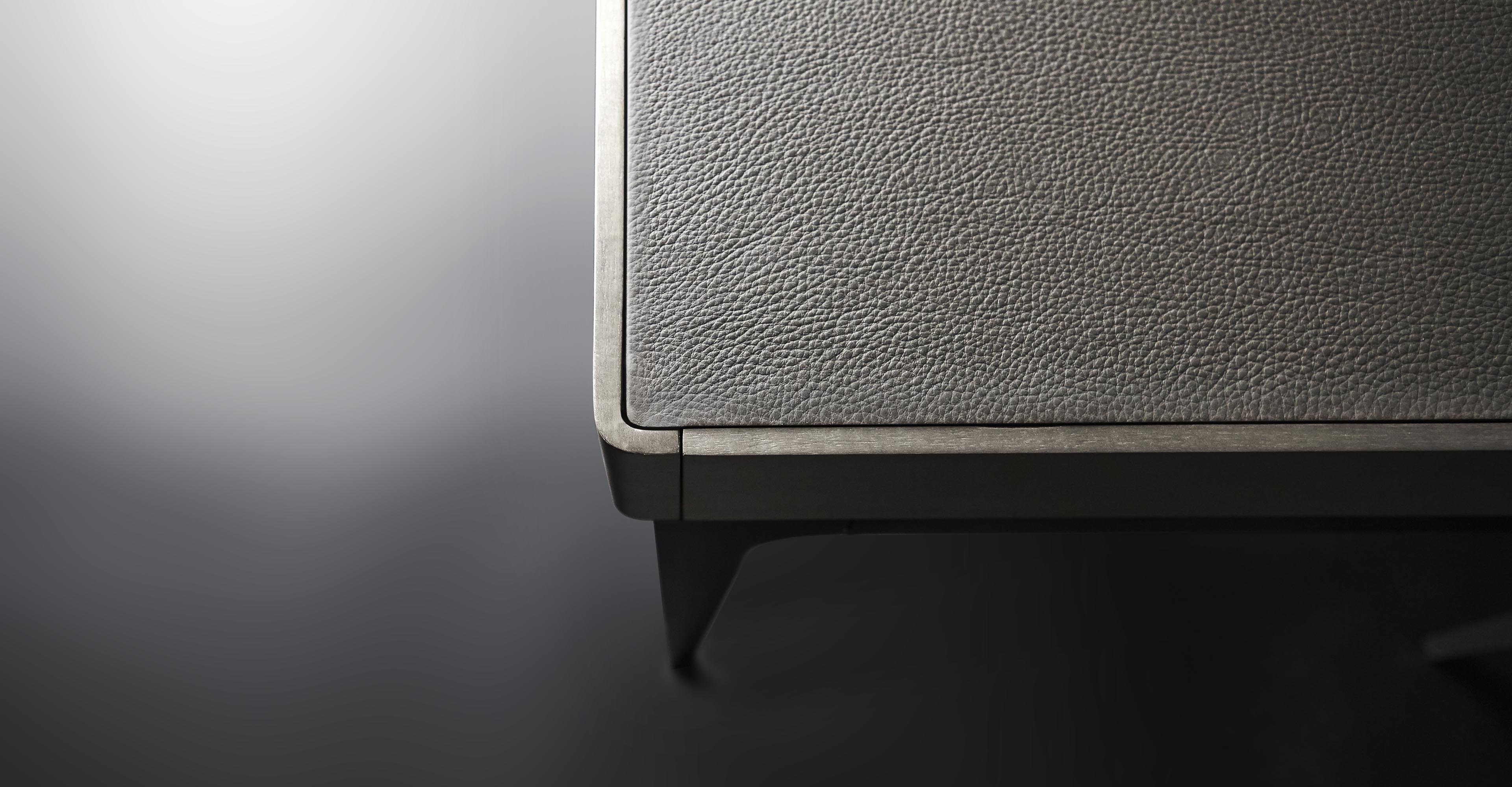 Hemingway办公桌精致而朴实无华,是任何房间的完美搭档。 采用固体漂白木材制成,呈现抛光镍细节和灰色皮革饰边尺寸。 它的圆形顶部和原始网格的细微细节增强了这种精致而永恒的家具的设计。