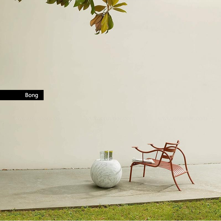 Bong咖啡桌有几种不同的版本:玻璃纤维漆白色,无烟煤色,红色,橙色,绿松石色或太阳黄色; 熔岩石饰面; 人造卡拉拉大理石; 带有花卉装饰。